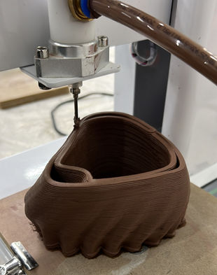 A ceramic planter constructed with a double-wall system that creates an internal water reservoir between layers of porous material. Water stored within the walls migrates slowly toward the soil, reducing evaporation and buffering fluctuations in moisture levels. The planter separates watering from the soil surface, allowing roots to access consistent hydration over time. Produced through 3D-printed ceramics, the internal cavity and wall gradients are integral to the form and cannot be achieved through traditional fabrication methods.